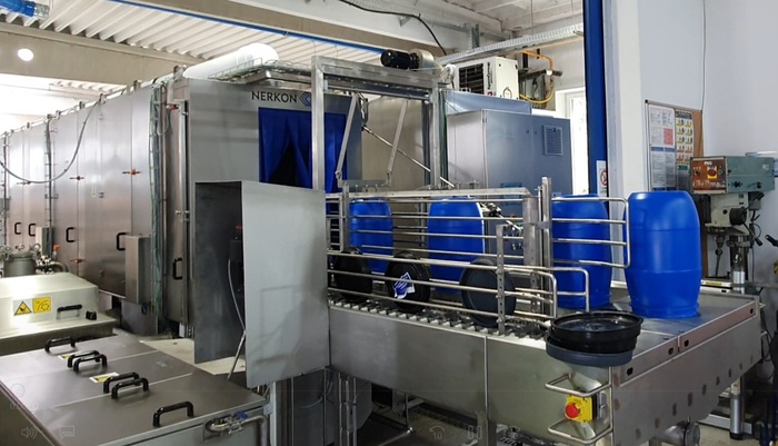 - Zusätzliche Kammer zum Reinigen von 240-Liter-Tonnen mit Lösungen aus einzelnen Modulen des kontinuierlichen Teils der Anlage.