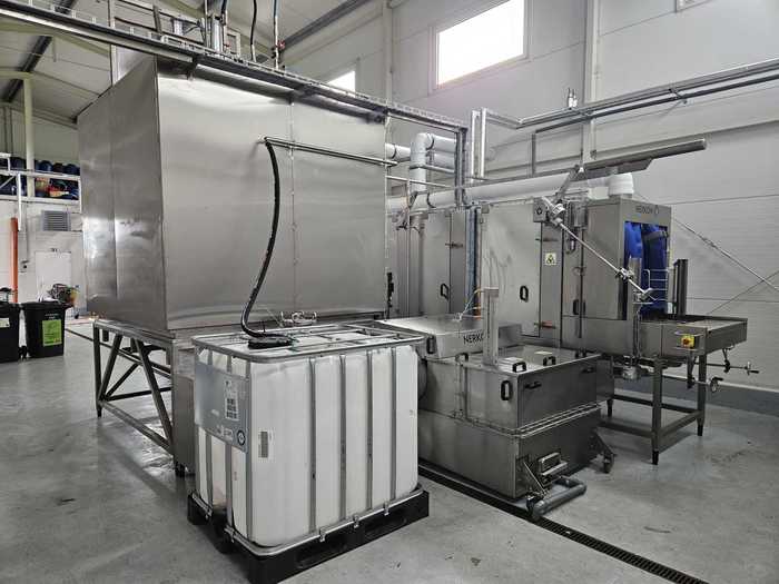 - Dampfabzug vom Ein- und Auslauf des kontinuierlichen Teils der Waschanlage und aus der Kammer zum Waschen von IBCs und Abfallbehältern.