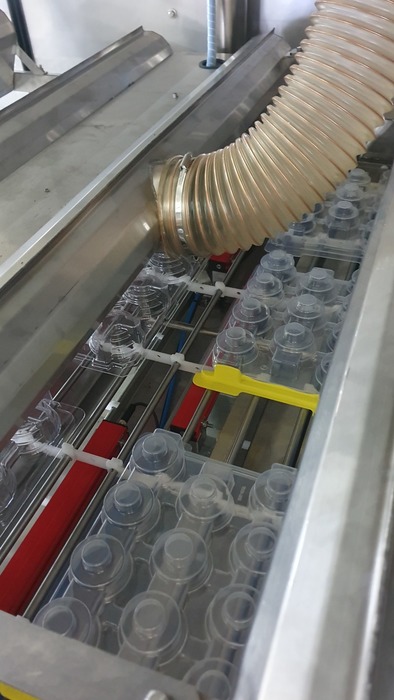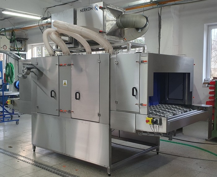 - Hygienic dry cleaning of crates and blisters of various widths (400–1200 mm)
