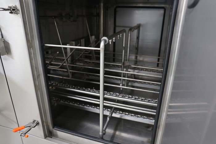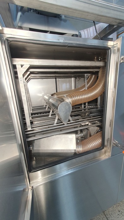 - Hygienické mytí přepravek různých výšek (120–300 mm)