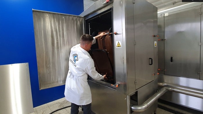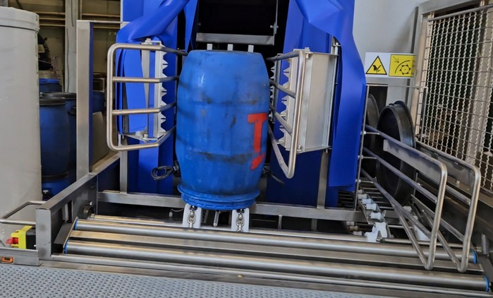 - Vymytí vnitřku sudů a popelnic díky pneumatickým tryskám a taktování dopravníku.